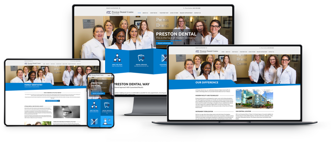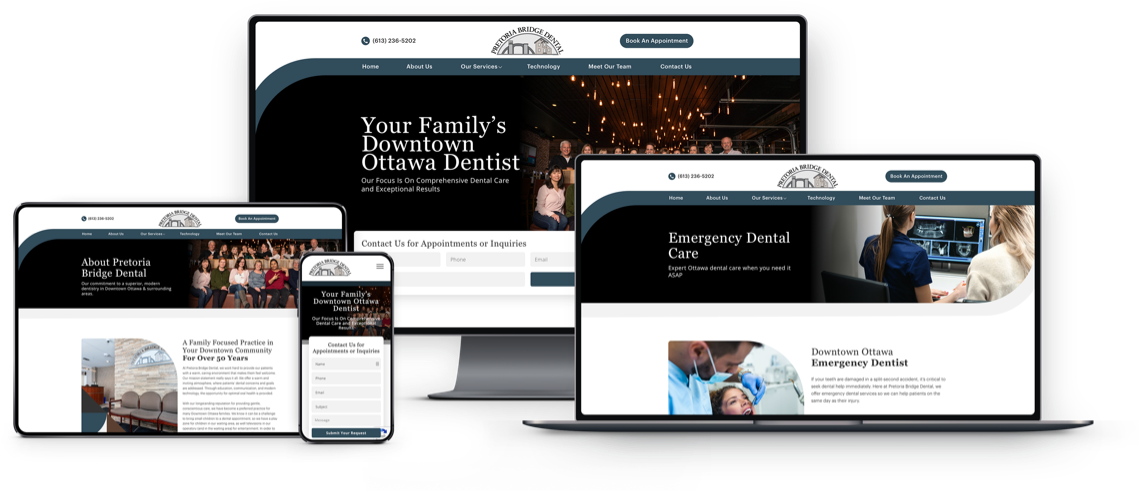 Pretoria Bridge Dental is a family focused practice that has been operating in Ottawa for over 50 years! The WebMarketers team wanted to do justice to the history of the dental clinic, and by tying in design cues from their practice and their existing logo we were able to produce the perfect website.