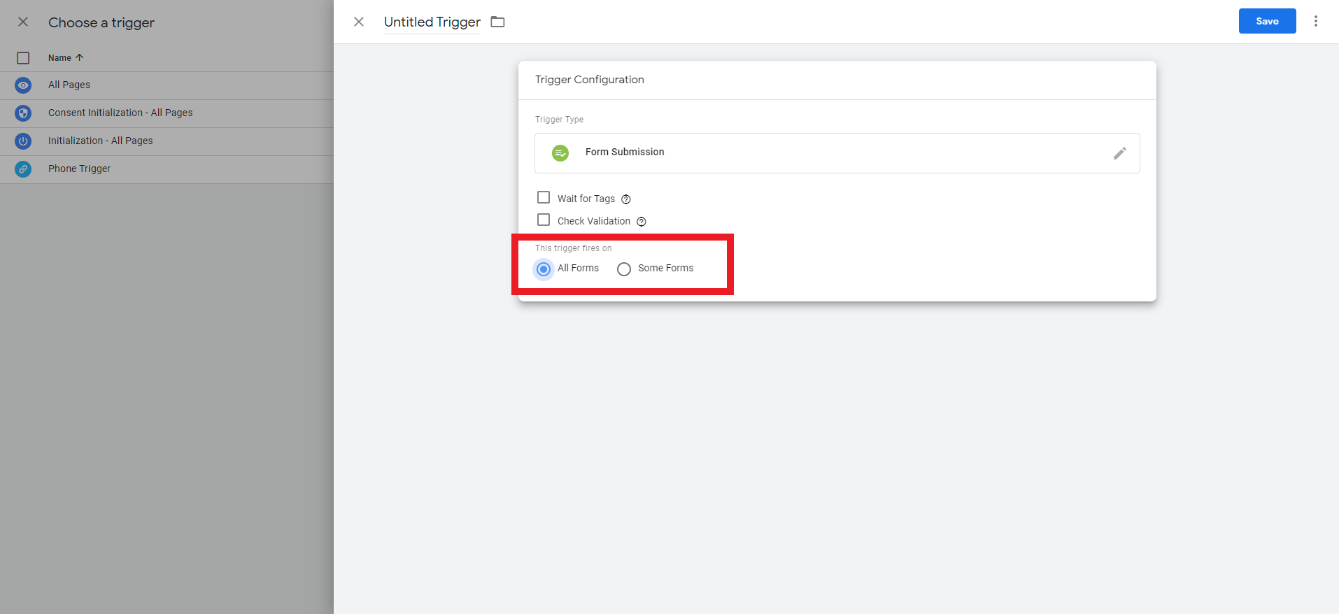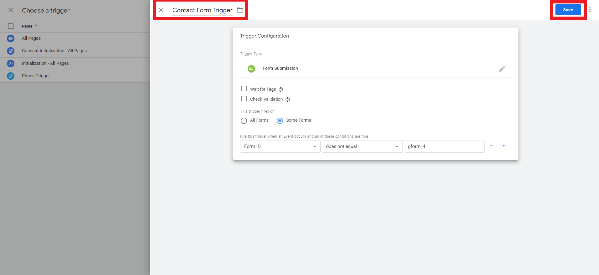 - Replace “Untitled Trigger” with “Contact Form Trigger” then click the Save button.