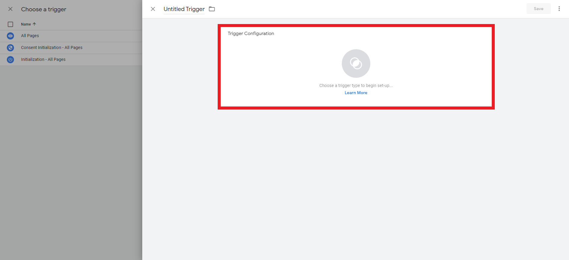 - On the Trigger Creation Screen, click on the Trigger Configuration box.