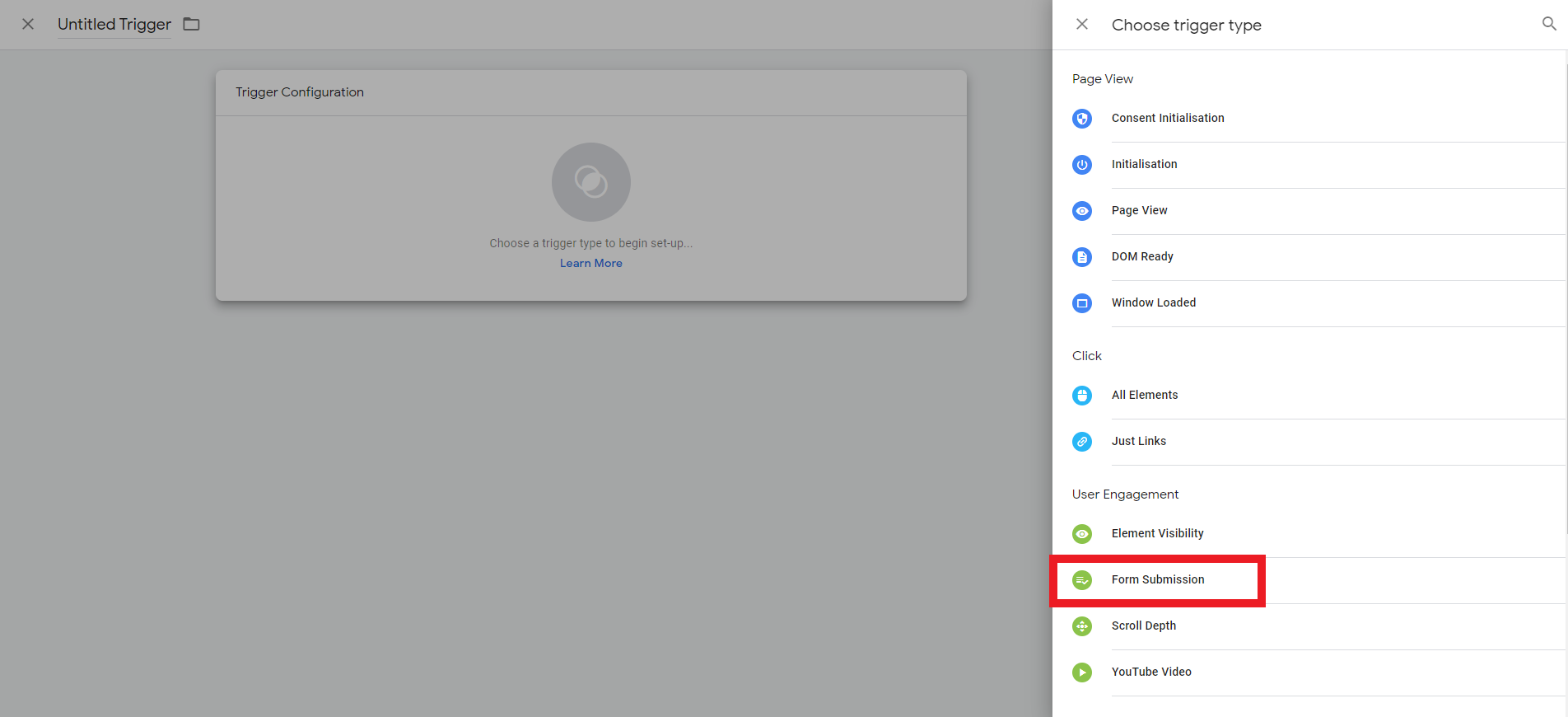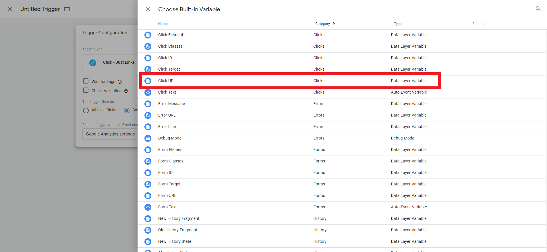 - On the Trigger Configuration Screen, select Choose Built-In Variable in the left-hand dropdown menu.