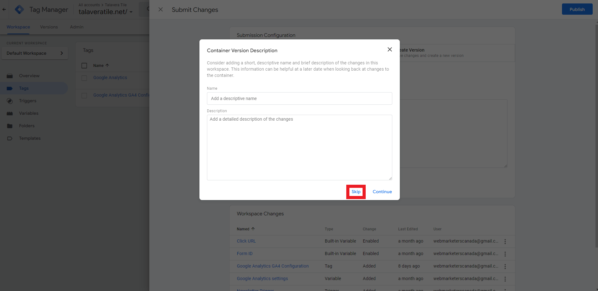 Once you have tested your conversion tracking and confirmed that all conversions are being tracked properly, all that is left to do is publish the Google Tag Manager Container.