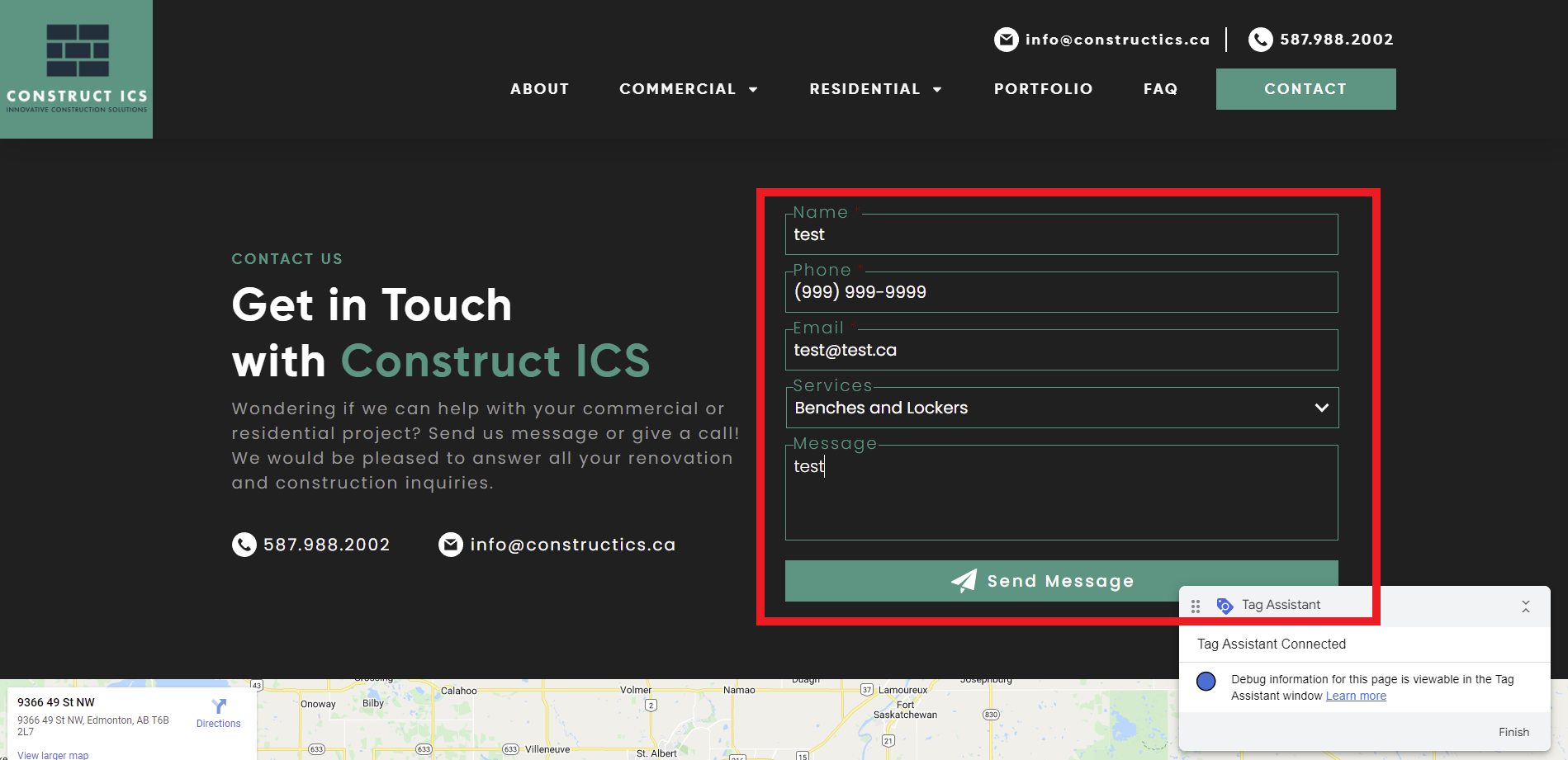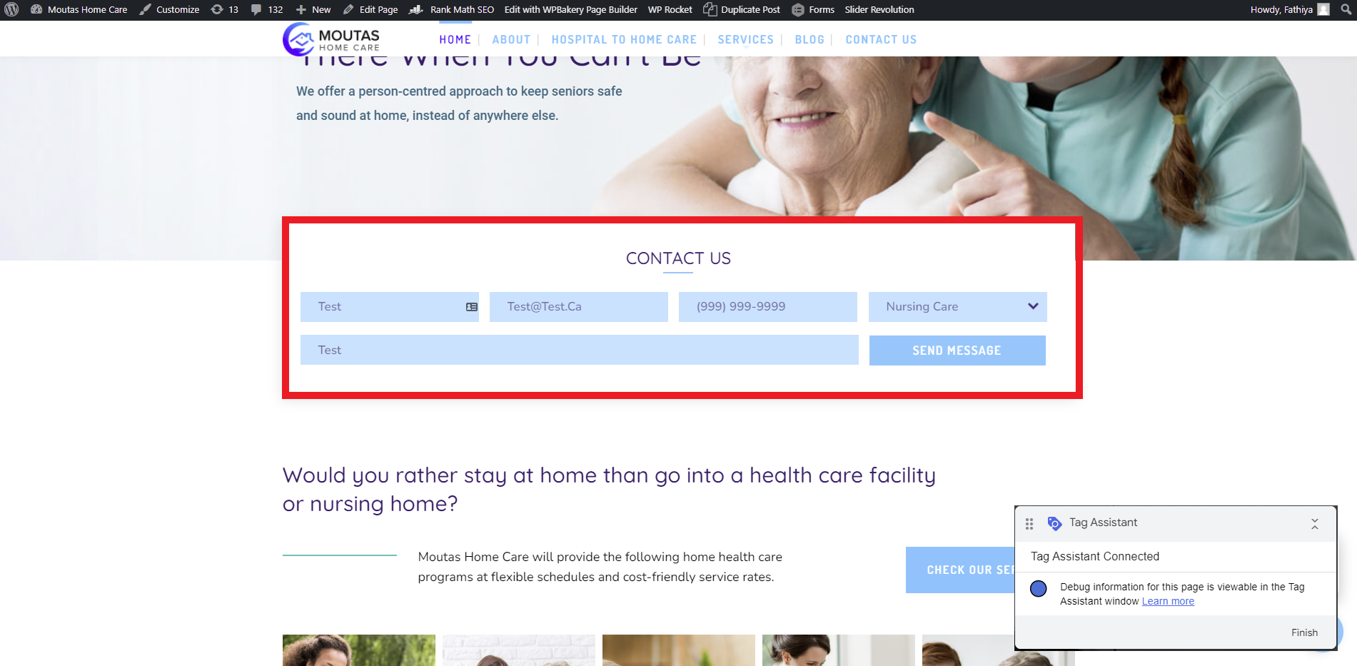 - Switch to the browser tab with the client’s website open that is connected to Tag Assistant and refresh the page. Then find the form you changed the notification for, fill it out and submit it.