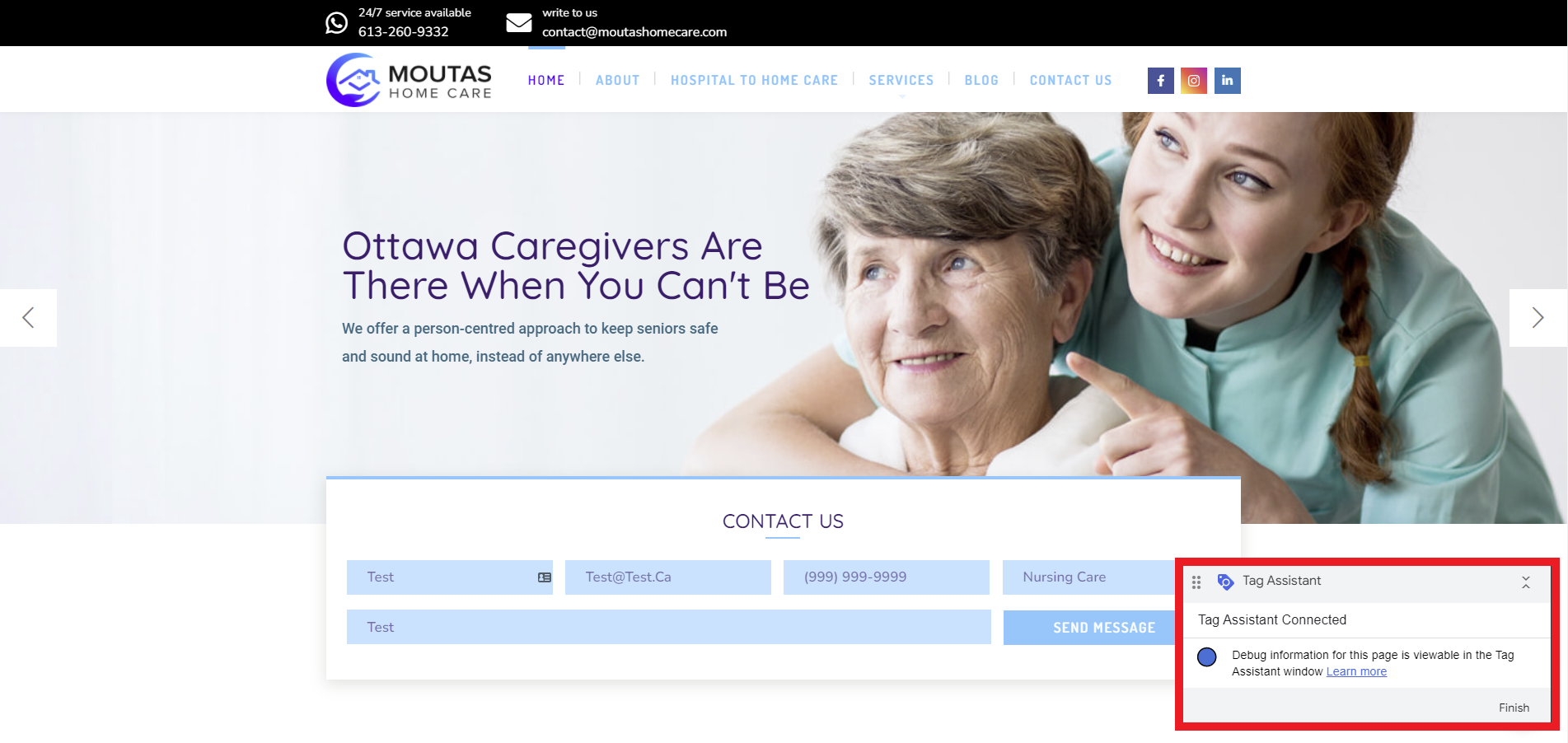 - On the client’s website tab that is connected to Tag Assistant, click on any email address and phone number link.