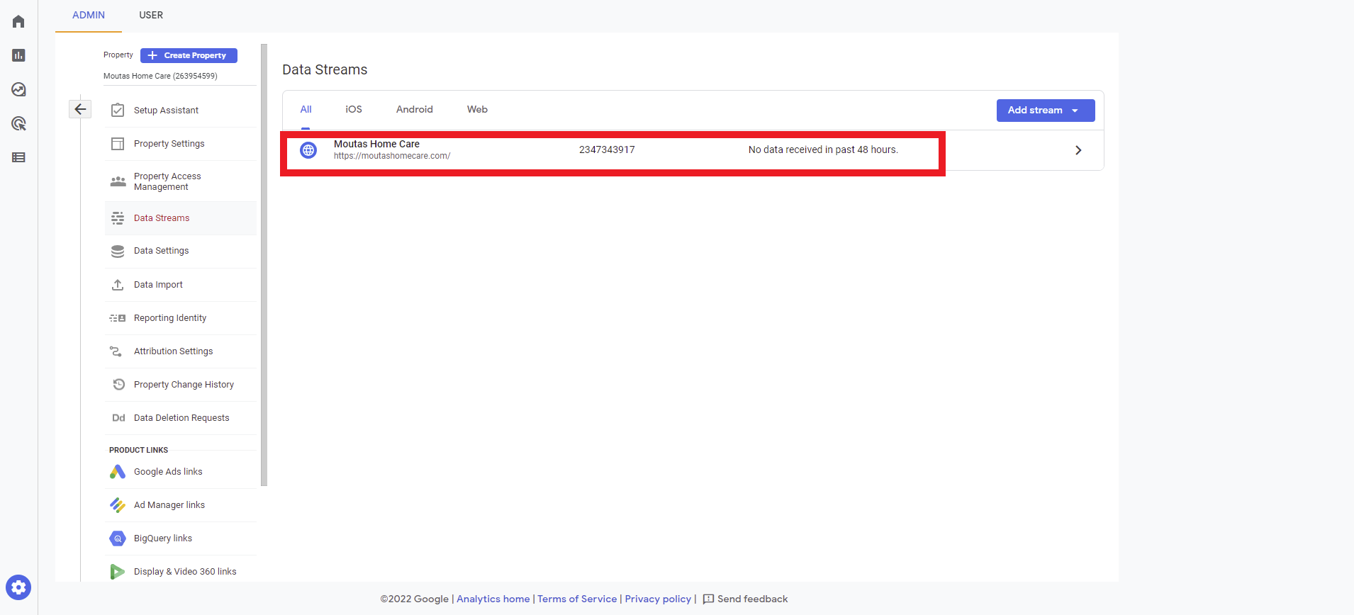 - Switch your browser tab to the Google Analytics Account, then click Admin in the bottom-left corner of the screen.