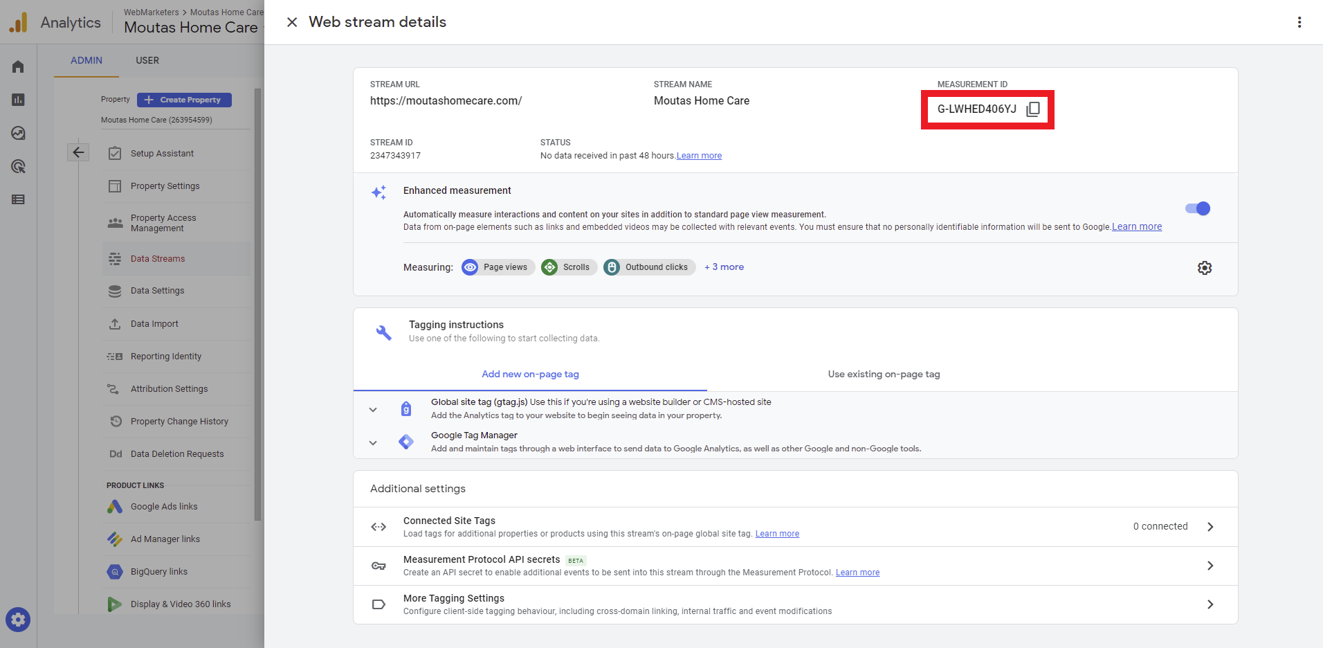 - On the Web Steam Details page, click the copy icon beside the Measurement ID.