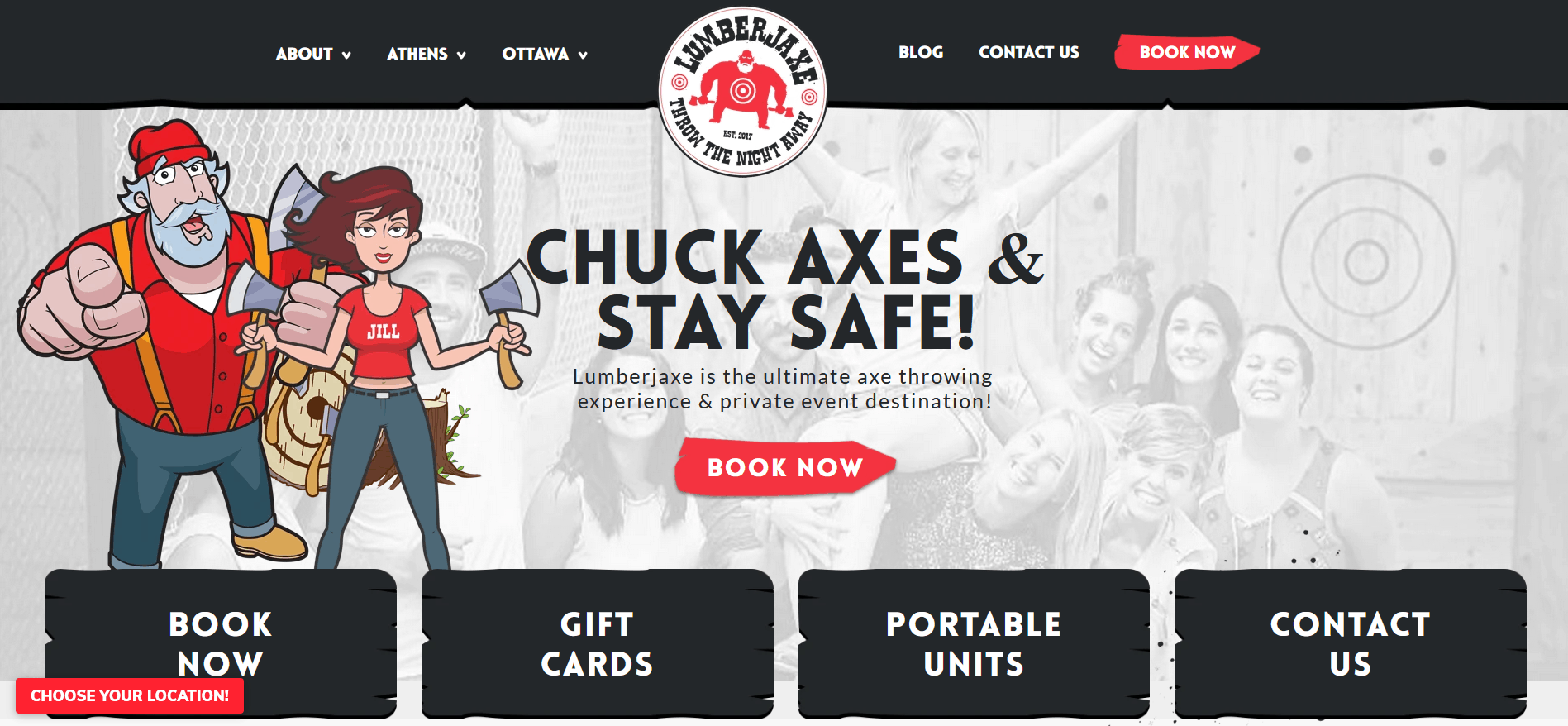 Our challenge for Lumberjaxe was to incorporate the playful atmosphere of their venues through their website design. Having the pandemic limit your main service is tough. For Lumberjaxe, this brought attention to their personal axe throwing target & stand and gift cards using the ecommerce platform Shopify.