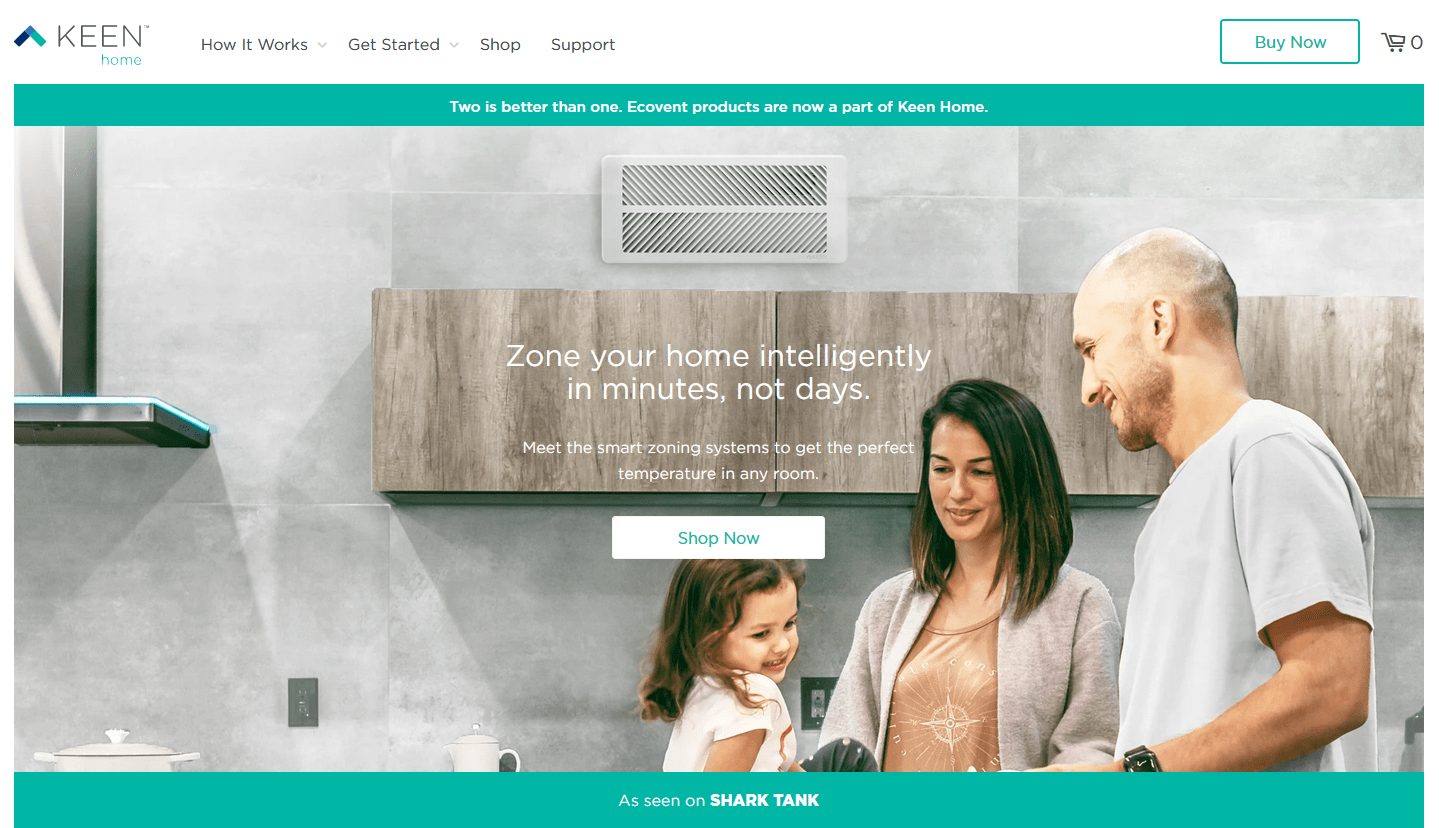Keen Home’s over the air smart zoning system allows for single-room heating and cooling within minutes. Their custom Shopify website design is great as it maintains visual balance to promote a product which enhances comfort, technology and cleanliness. From the use of whitespace to their well placed call to actions, it’s no wonder why they do so well.